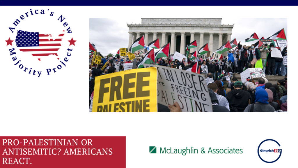 Majorities of America’s New Majority (60%) and the Left’s Minority (55%) voters agree it is antisemitic to call for the dismantling of the Jewish state of Israel.
