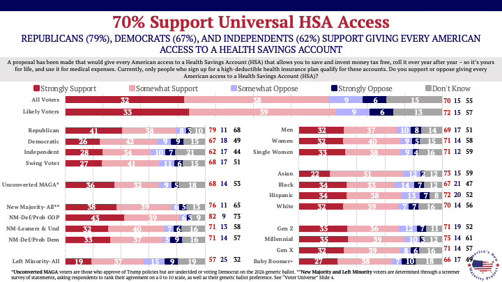 70% support universal access to Health Savings Accounts.